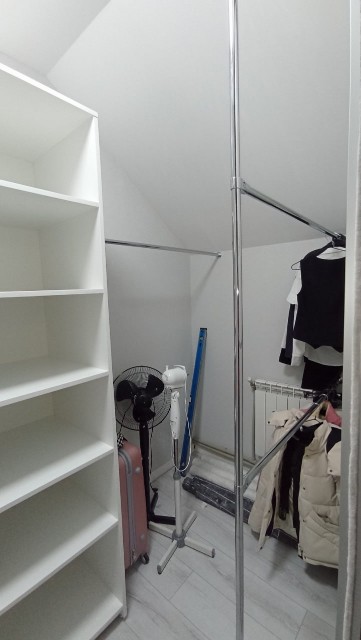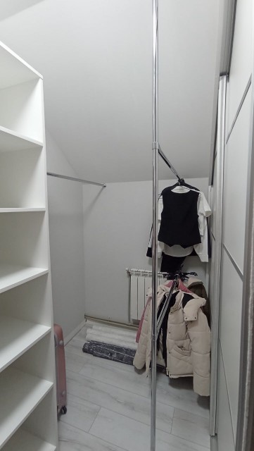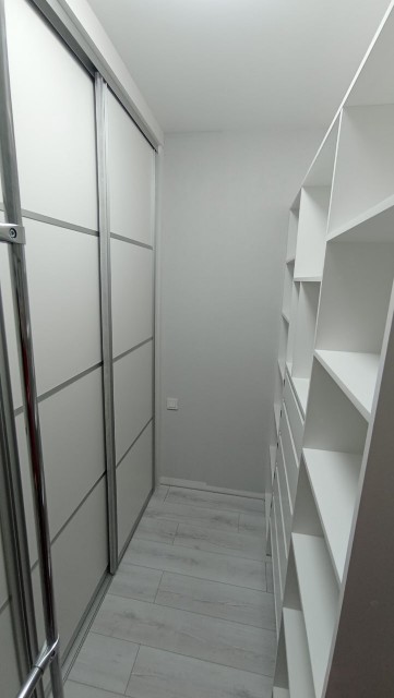 Оснащается шкафом, открытыми нишами, штангами для одежды, ящиками, подсветкой.