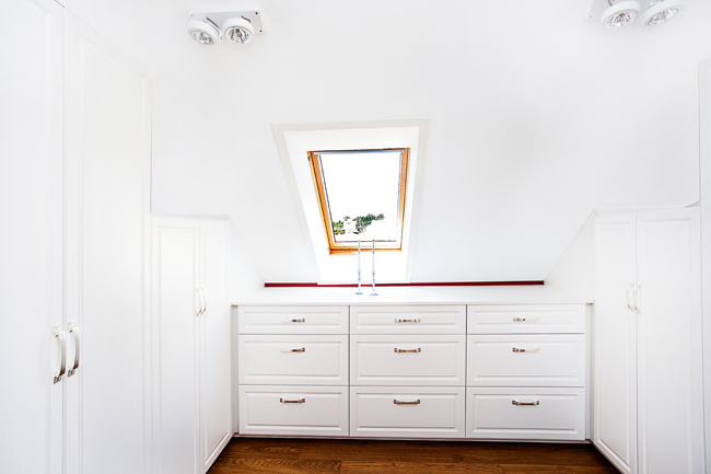 Шкаф с нишей и выдвижными ящиками в светлых тонах.