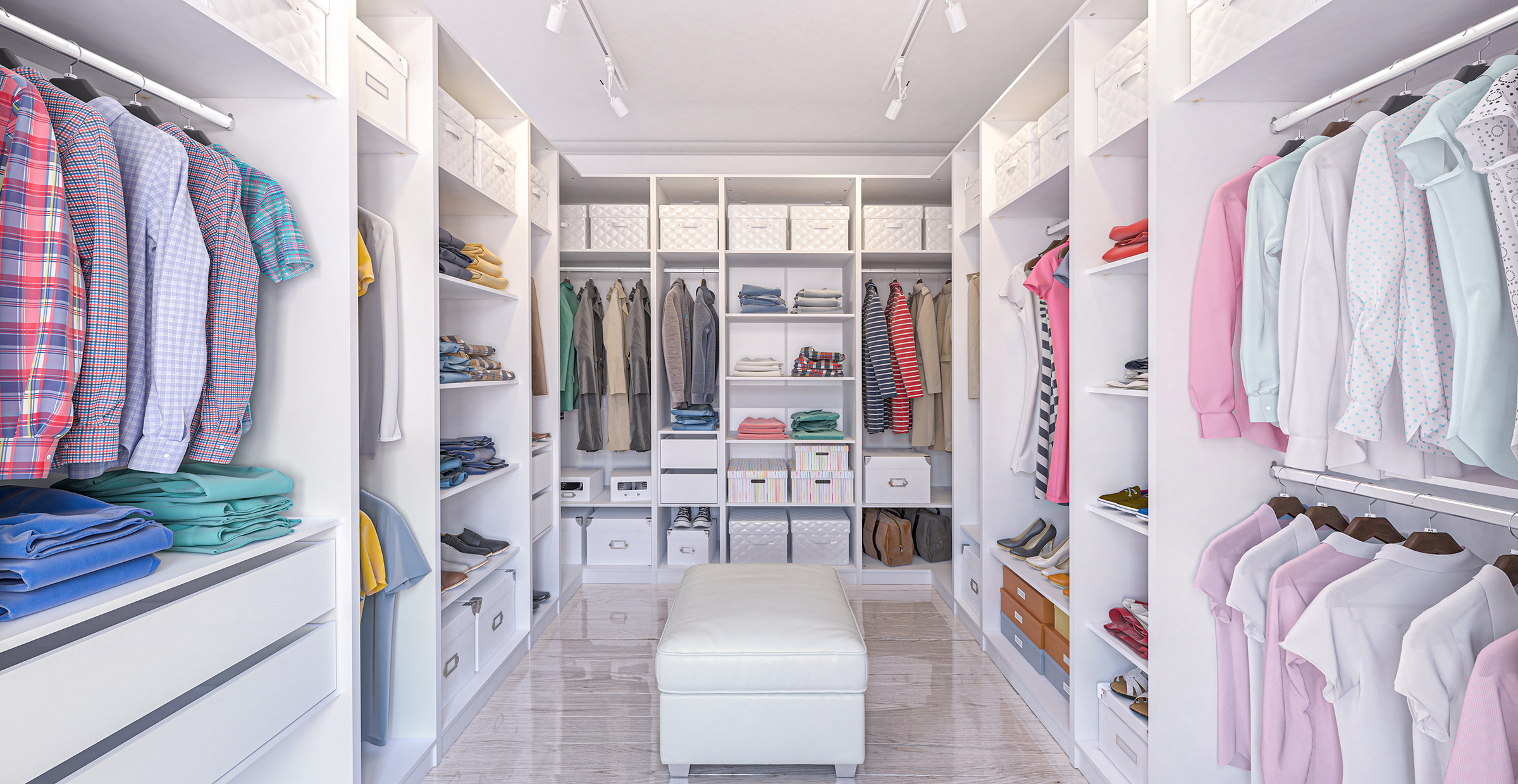 Оснащается штангами для одежды, полками и выдвижными ящиками.