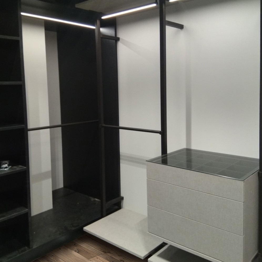 Подсветка. Выдвижные ящики, штанги для верхней одежды.