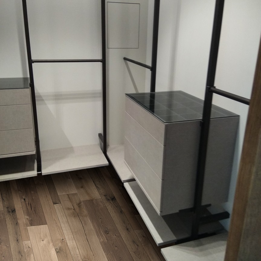 Оснащается штангами для одежды, полками и выдвижными ящиками.