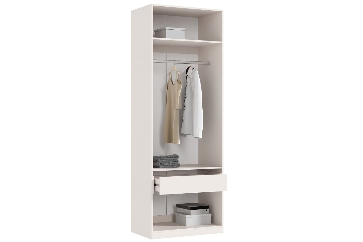 Изготавливается из ЛДСП. Штанги для одежды, выдвижные ящики, открытые ниши.