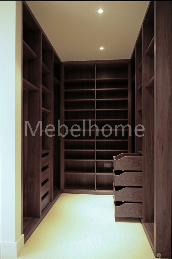 Изготавливается из ЛДСП. Штанги для одежды, выдвижные ящики, открытые ниши. Подсветка.