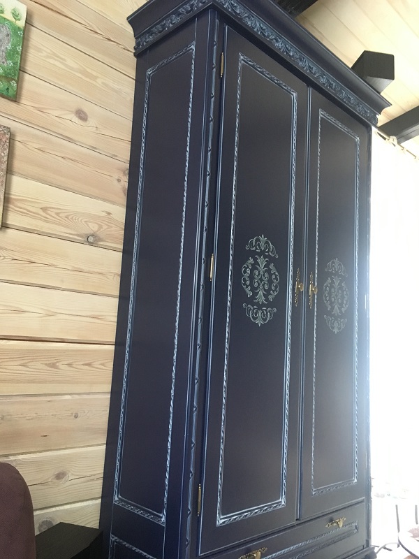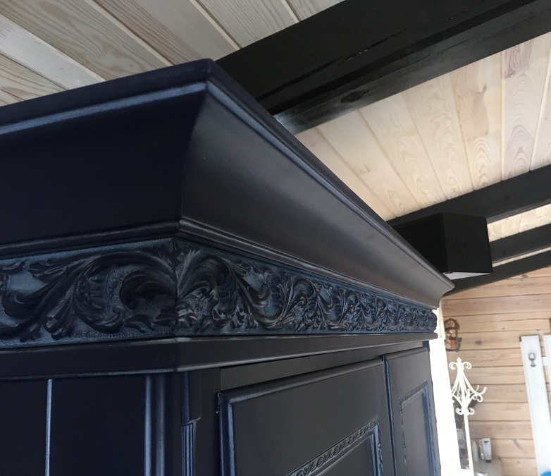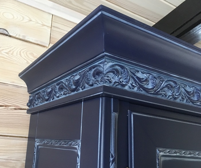 код 64019Темно-синий корпус с резным карнизом и лаконичным узором.