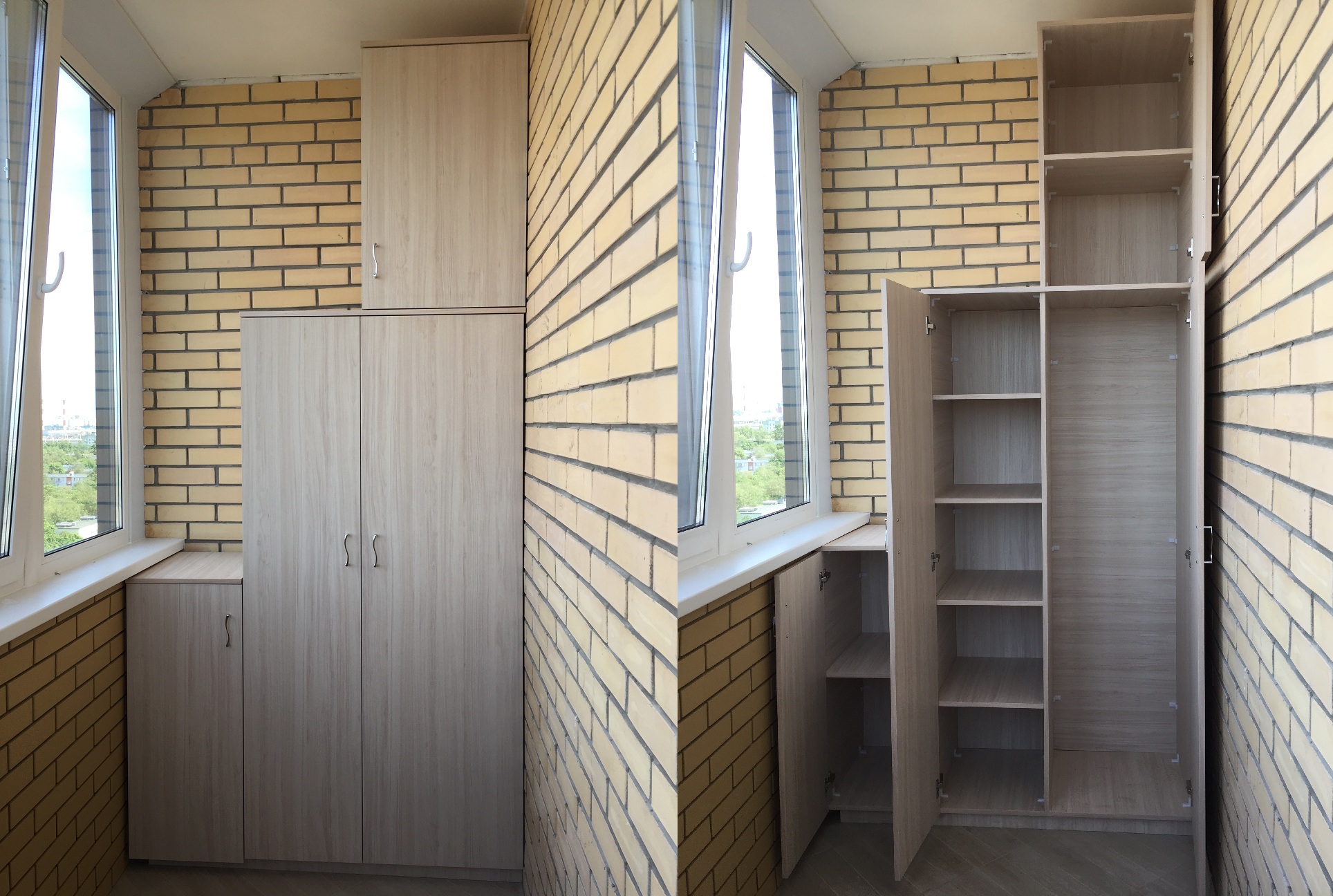 Шкаф древесного окраса на балкон
