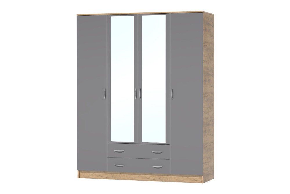 Две глухие распашные створки, две зеркальные. Послужит незаменимым помощником в хранении вещей.