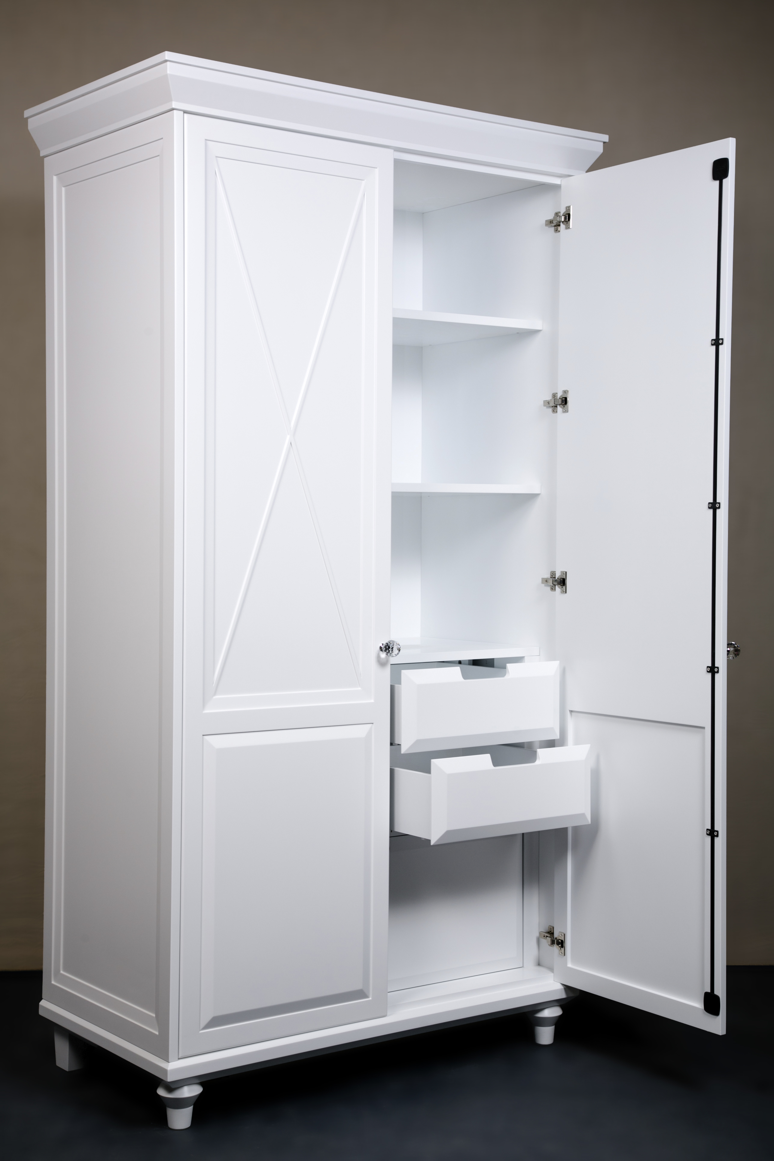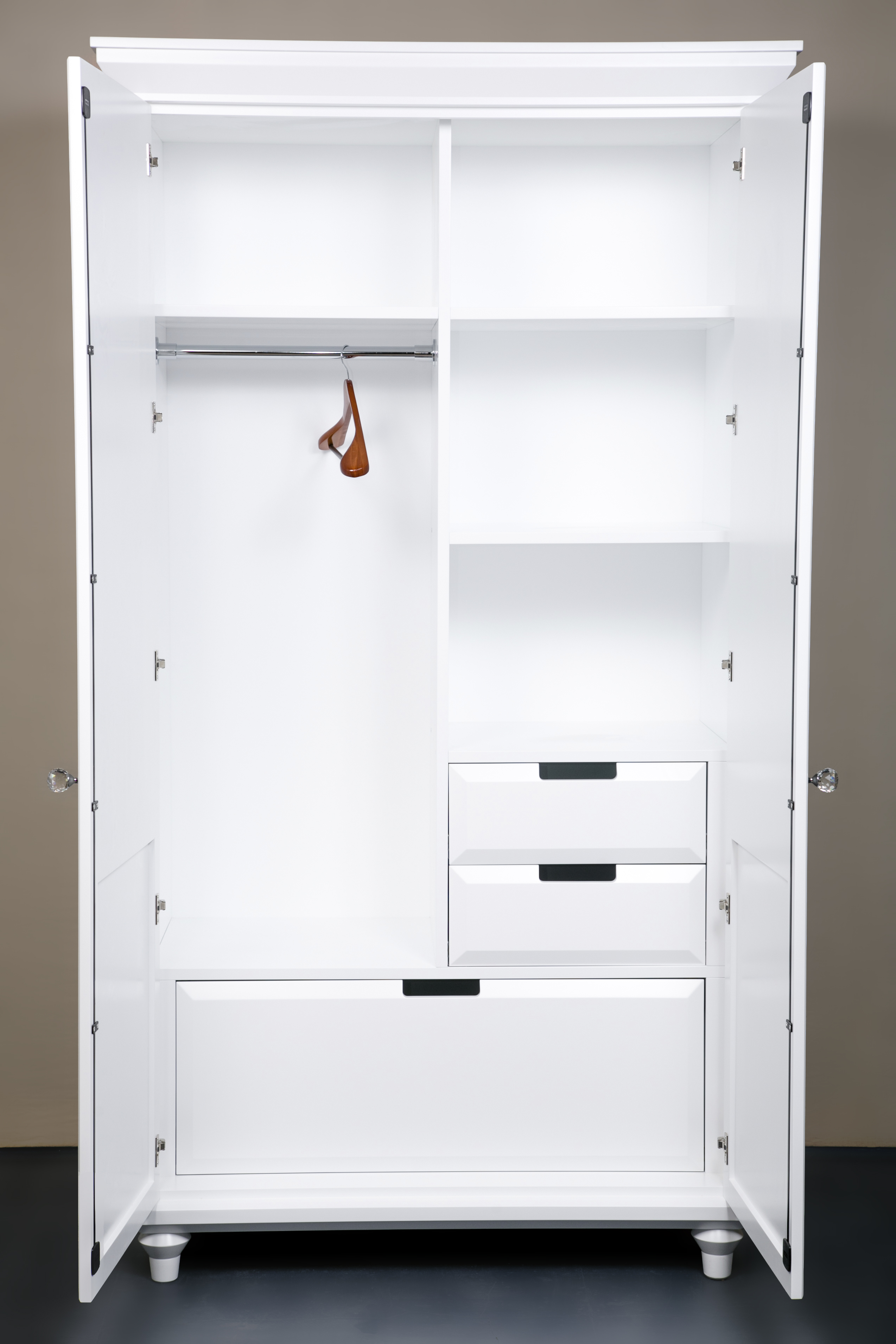 Универсальный белый цвет. Штанги для одежды в комплекте.