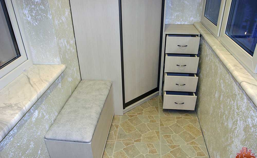 Встроенная и модульная мебель для размещения на лоджии. Угловая или линейная комплектация согласно пожеланиям заказчика.