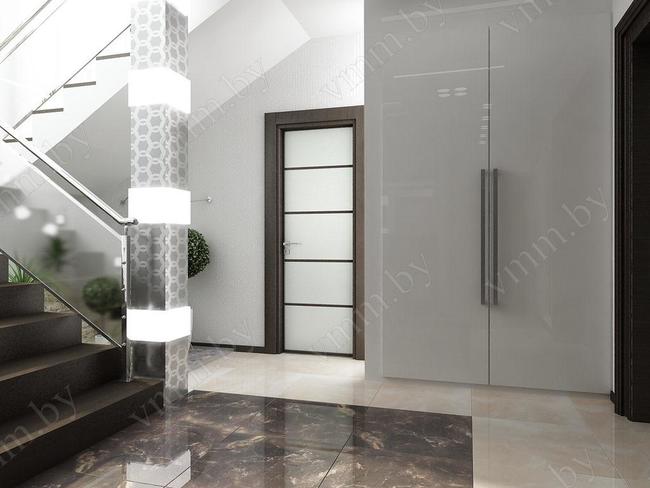 Строгий дизайн. Фасад: глянец. Длинные хромированные ручки.