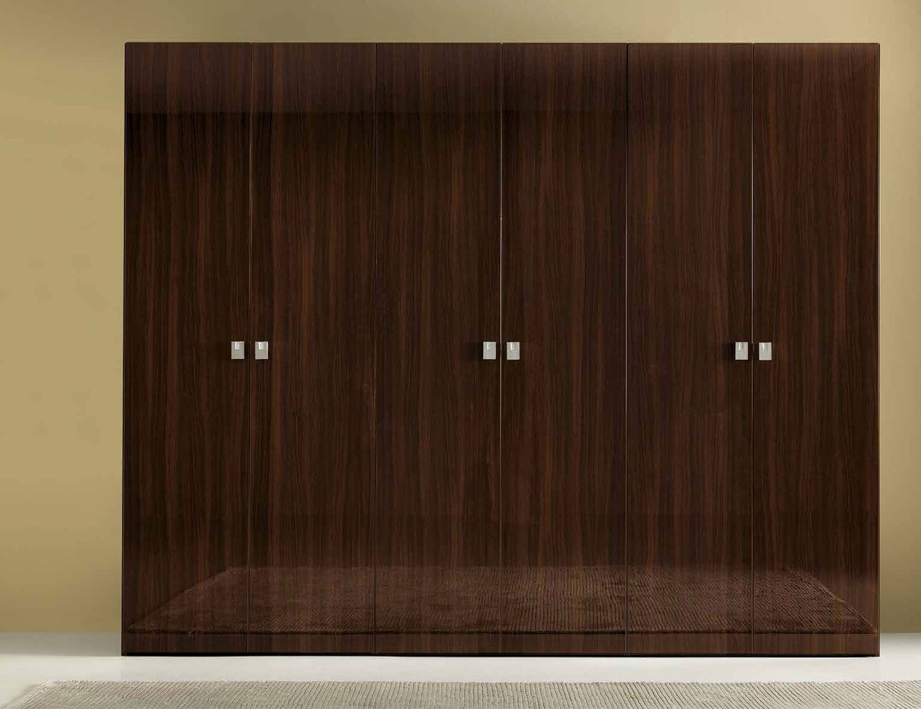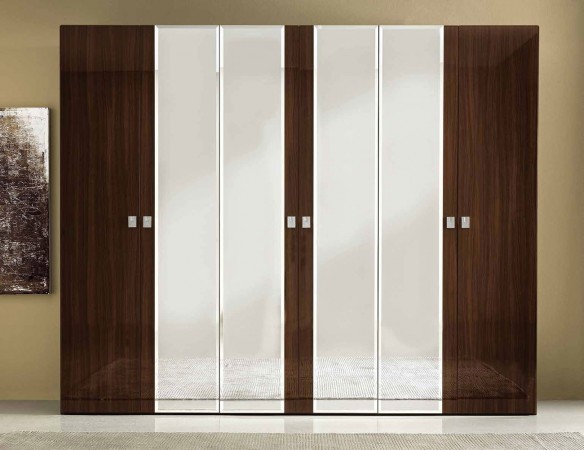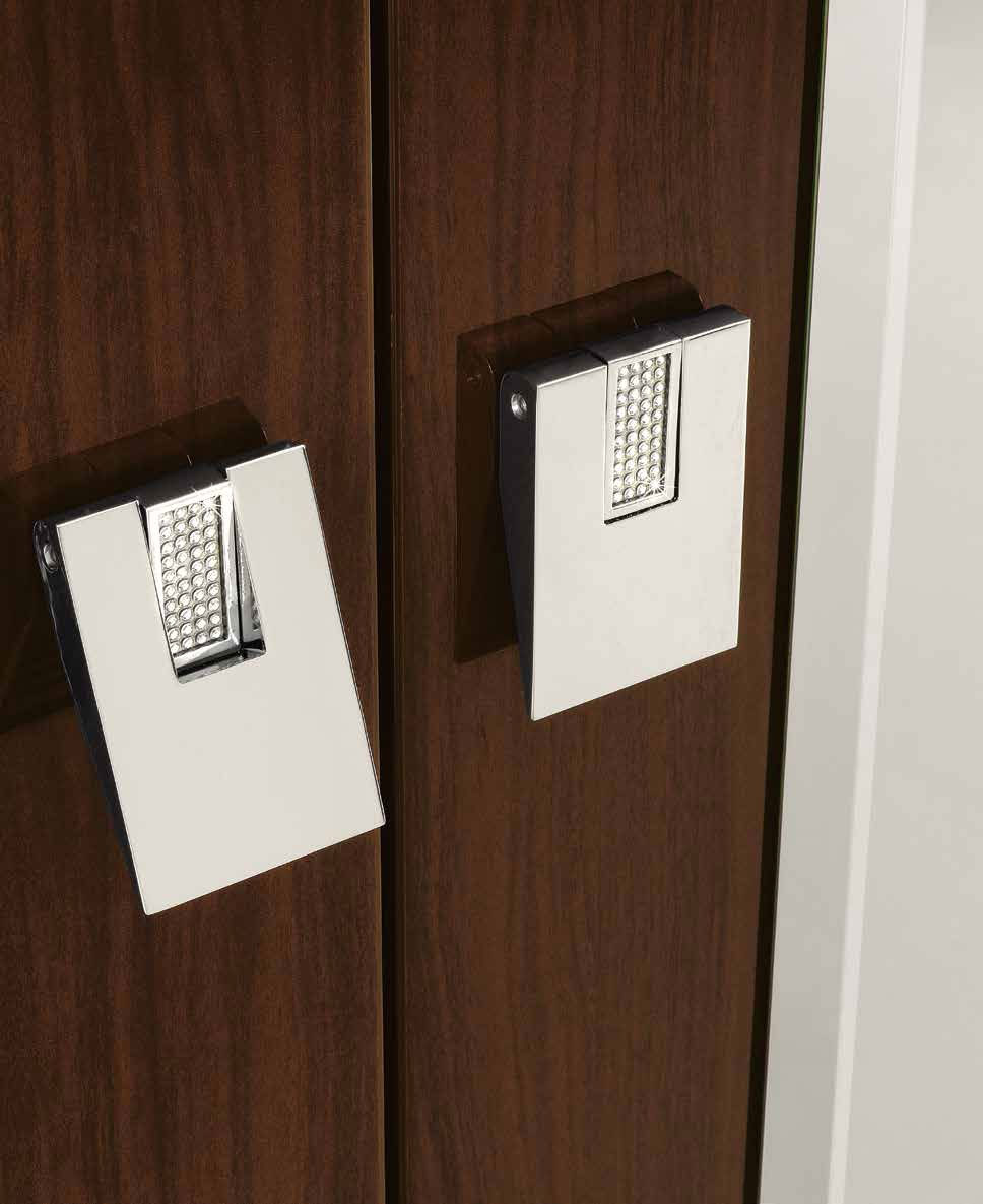 Прямолинейные шкафы «Onda» представляют собой прекрасное сочетание стиля и качества во всех их элементаю. Фасад шкафа для одежды и аксессуаров выполнен в цвете орех с глянцем и модет быть дополнен белыми глянцевыми створками из лакобеля. Интересные ручки на створках выполнены из металла и декорированы кристаллами «Swarovski».