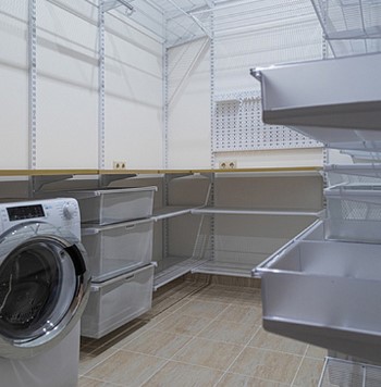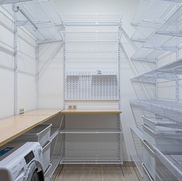 • Благодаря модульной системе гардеробных решений Gardie, мы смогли удобно разместить стиральную машину, кран с водой и сушилку, которые позже были установлены клиентом самостоятельно.