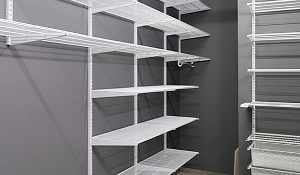 Верхний ряд проволочных полок для хранения вещей в органайзерах.
