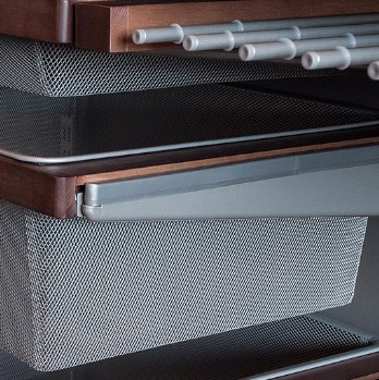 • Выдвижные блоки мелкосетчатых корзин разной глубины обеспечивают циркуляцию воздуха, что позволяет одежде оставаться свежей.
