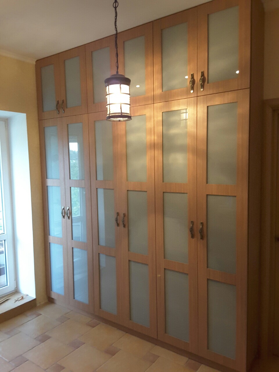 Высокий гардеробный шкаф рамного остелкения