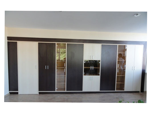 Шкафы рассчитаны для большого пространства. Комбинированный цвет и стеклянные вставки.