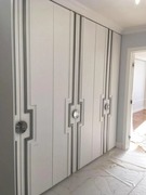 Строгий дизайн. Фасад: глянец. Длинные хромированные ручки.
