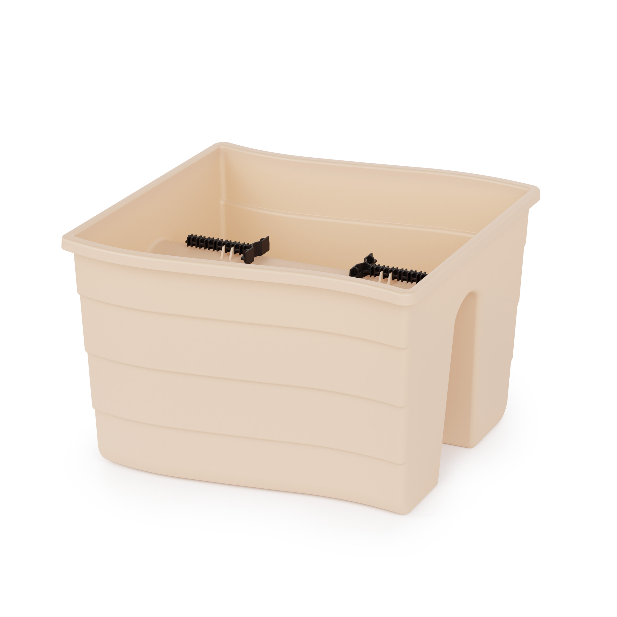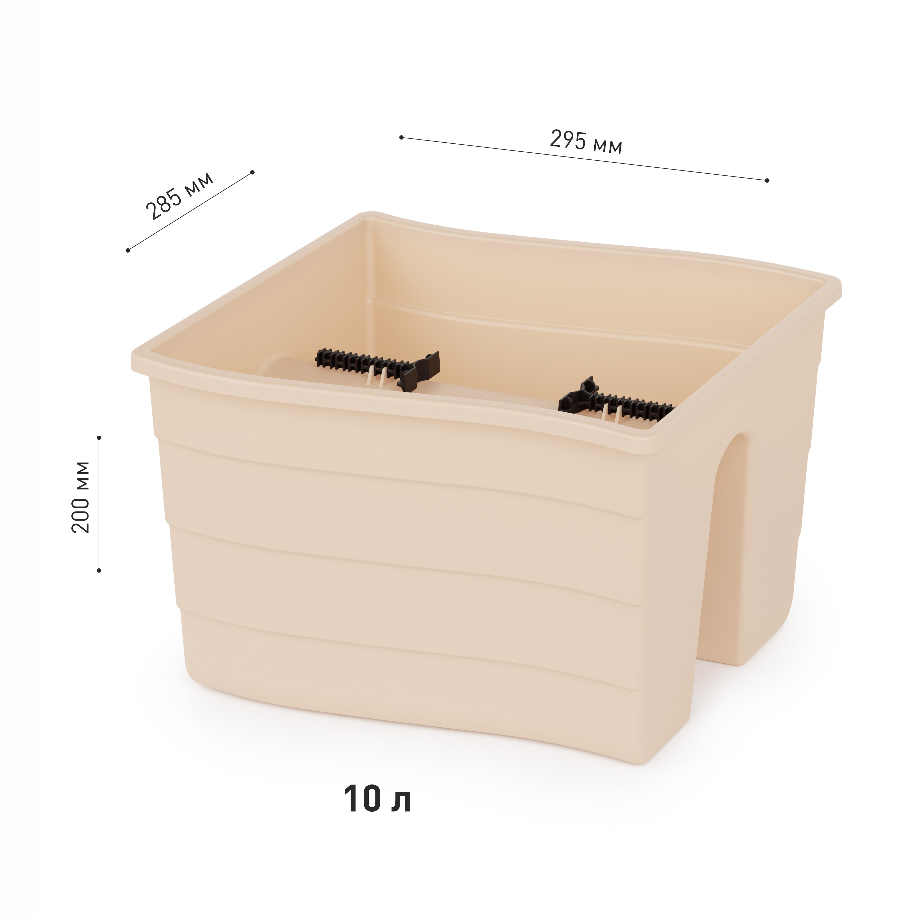 Кашпо легко установить на перила лестниц, ограждения открытых балконов, декоративные стенки. Специальные зажимы позволяют закрепить кашпо на разной ширине перила. Максимальная ширина рейлинга - до 5 см. Дно оснащено столбиками с отверстиями для отвода лишней воды во время дождя или при чрезмерном поливе.