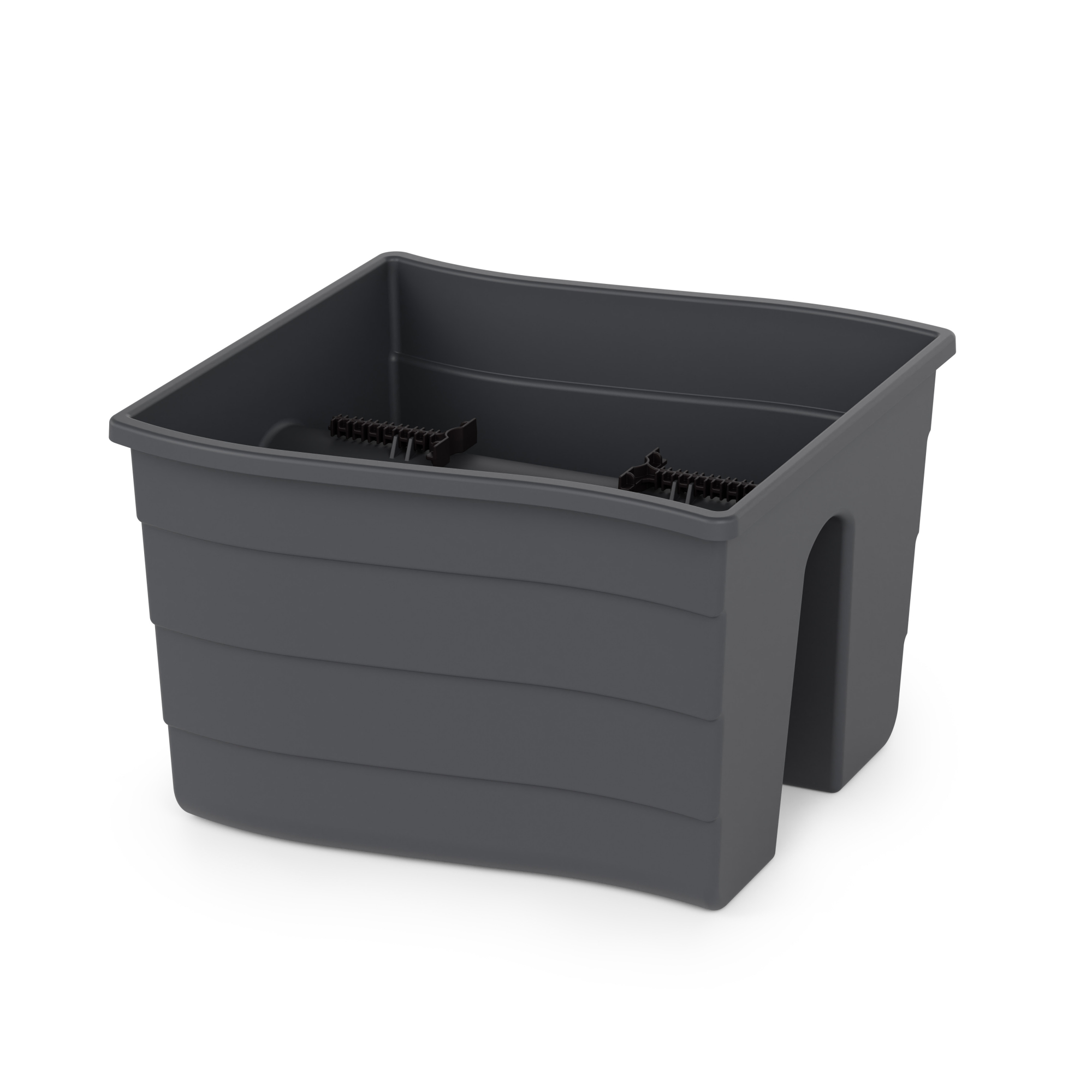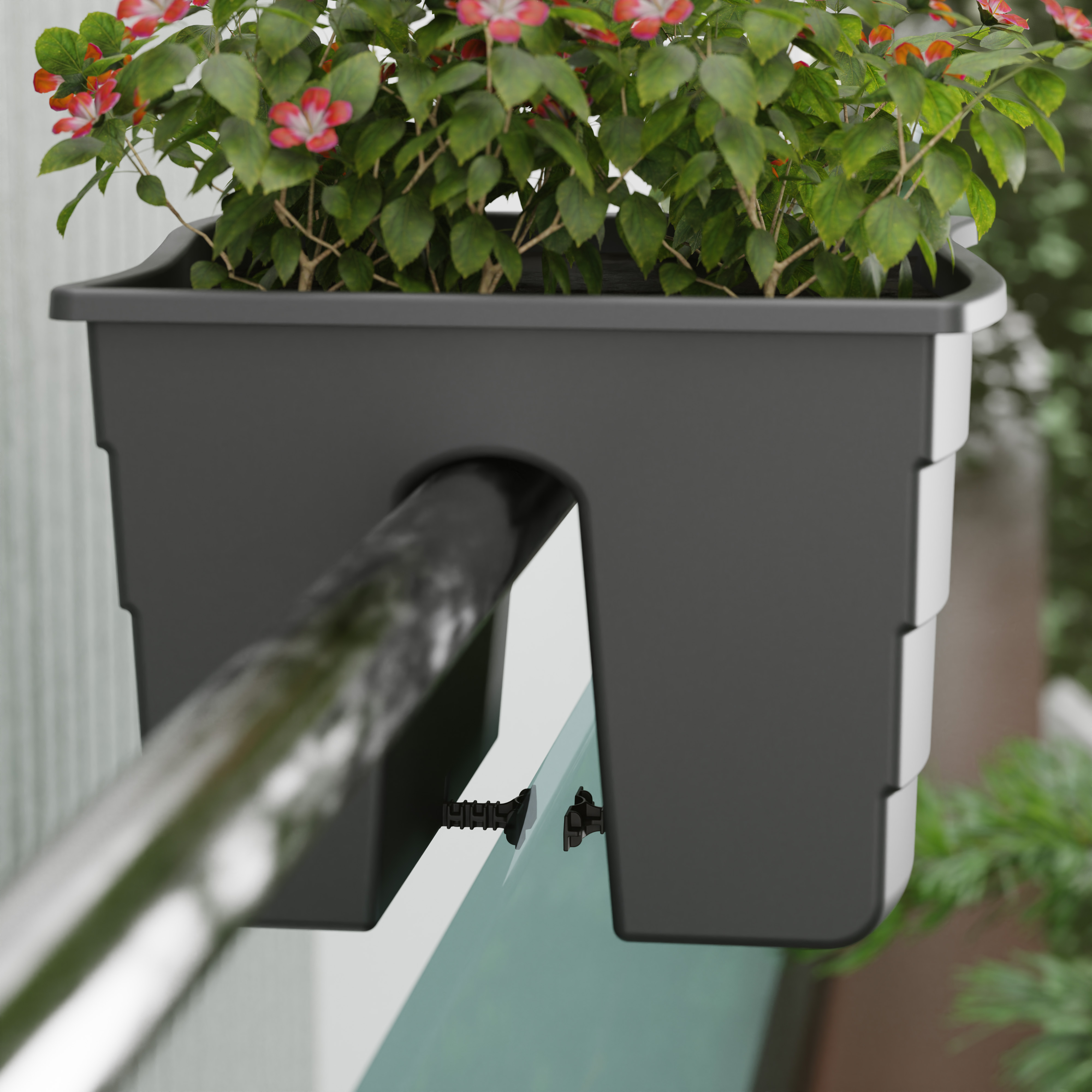Кашпо легко установить на перила лестниц, ограждения открытых балконов, декоративные стенки. Специальные зажимы позволяют закрепить кашпо на разной ширине перила. Максимальная ширина рейлинга - до 5 см. Дно оснащено столбиками с отверстиями для отвода лишней воды во время дождя или при чрезмерном поливе.
