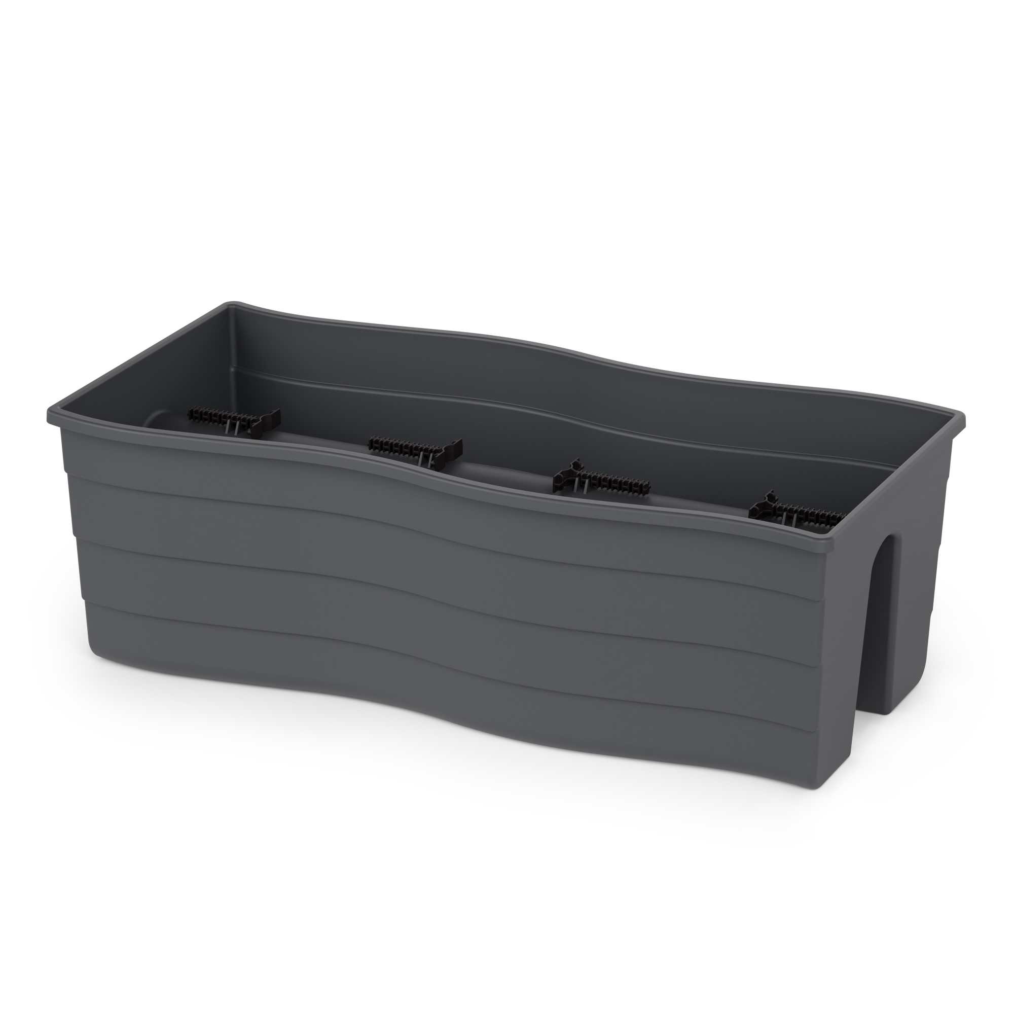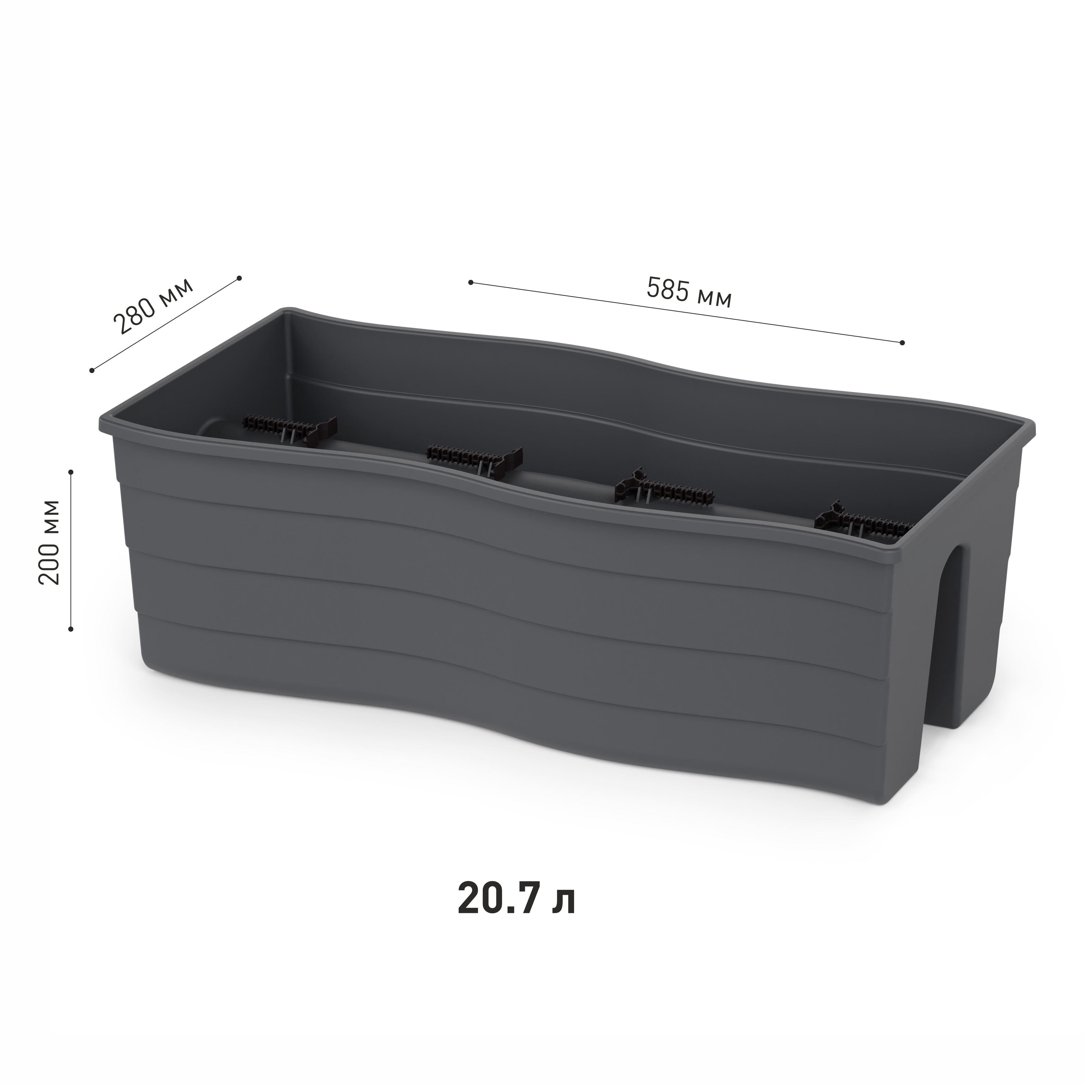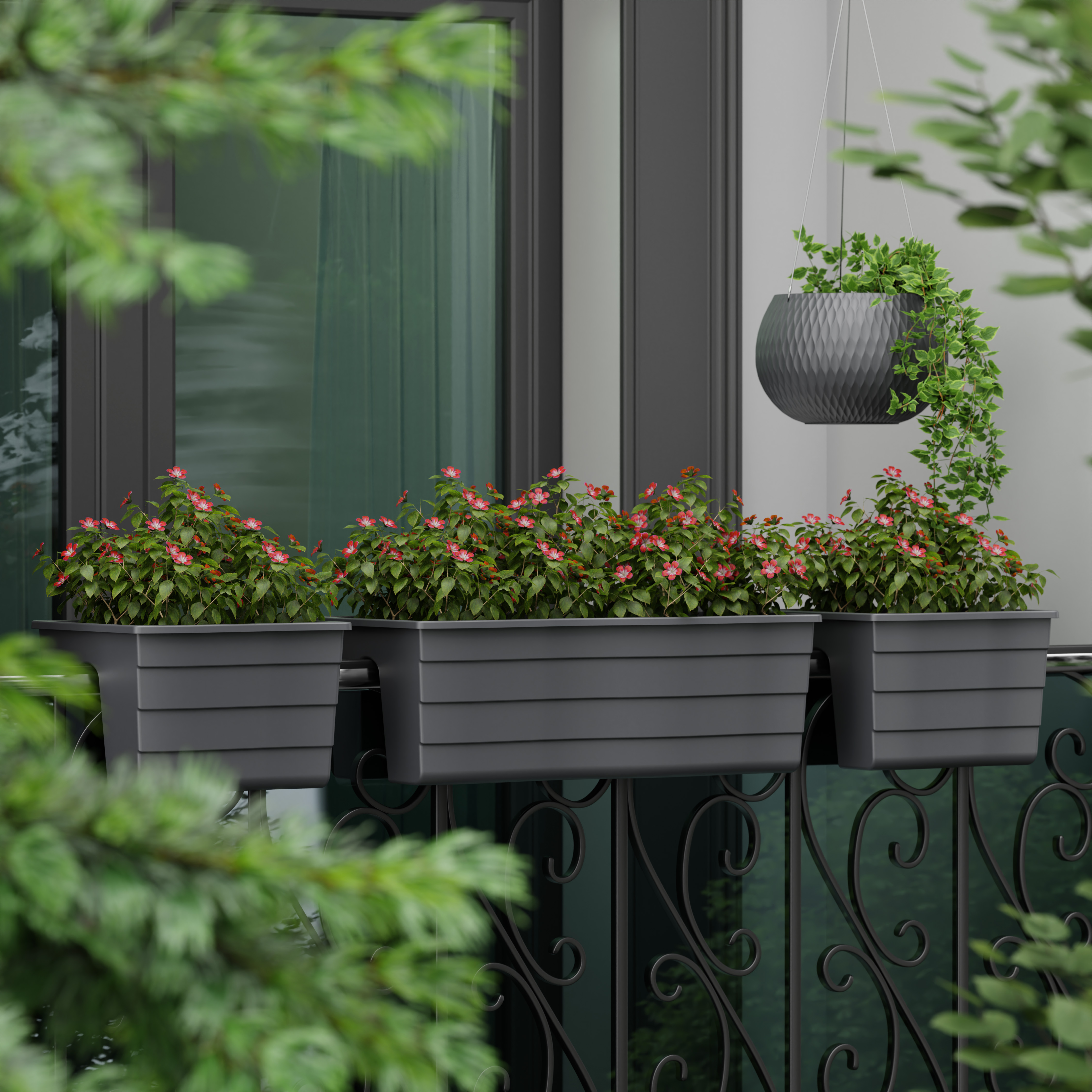 Кашпо легко установить на перила лестниц, ограждения открытых балконов, декоративные стенки. Специальные зажимы позволяют закрепить кашпо на разной ширине перила. Максимальная ширина рейлинга - до 5 см. Дно оснащено столбиками с отверстиями для отвода лишней воды во время дождя или при чрезмерном поливе.