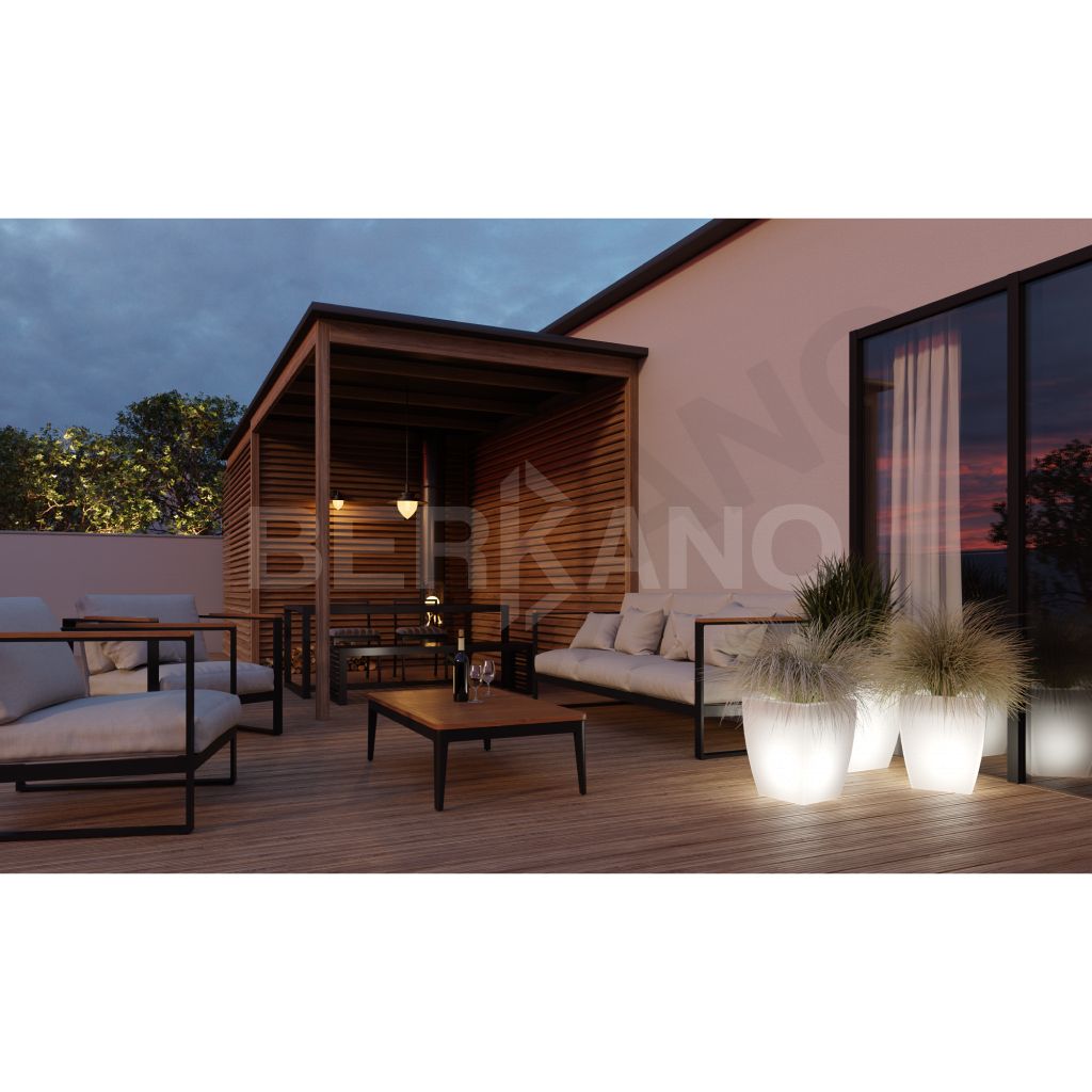 Кашпо TENERO выполнено в стиле минимализм, позволяющем сделать акцент на деталях Вашего интерьера и создать уютную атмосферу. Разнообразие цветовых решений кашпо позволит украсить практически любое пространство. Данная модель идеально подойдет для оформления и зонирования домашнего интерьера, а также для использования в загородных экстерьерах. Каждая модель серии TENERO может быть оснащена LED световым источником, что придаст оригинальности любому интерьеру в вечернее время суток. Такое кашпо может освещать террасы, сады и парки во время различных мероприятий. Кашпо TENERO имеет степень влагозащиты IP68, что позволяет ему работать как внутри, так и снаружи помещения, в любую погоду, включая осадки: дождь и снег.