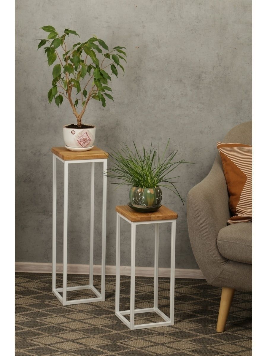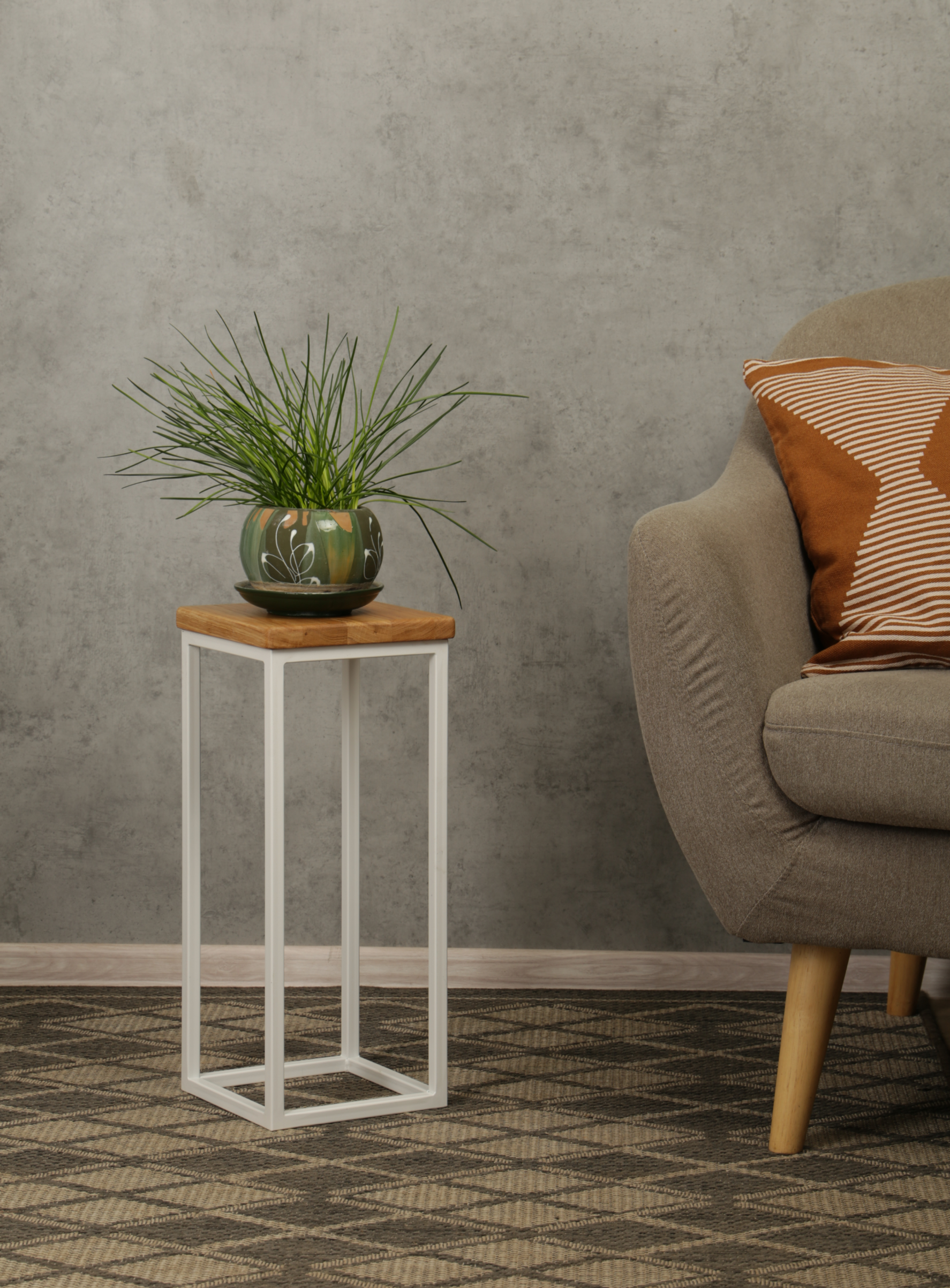 Напольная подставка для цветов и комнатных растений, которая гарантировано украсит ваш дом изысканным сочетанием массива дуба, покрытого специальными маслами и воском, толщиной 20 мм и прохладной стали.