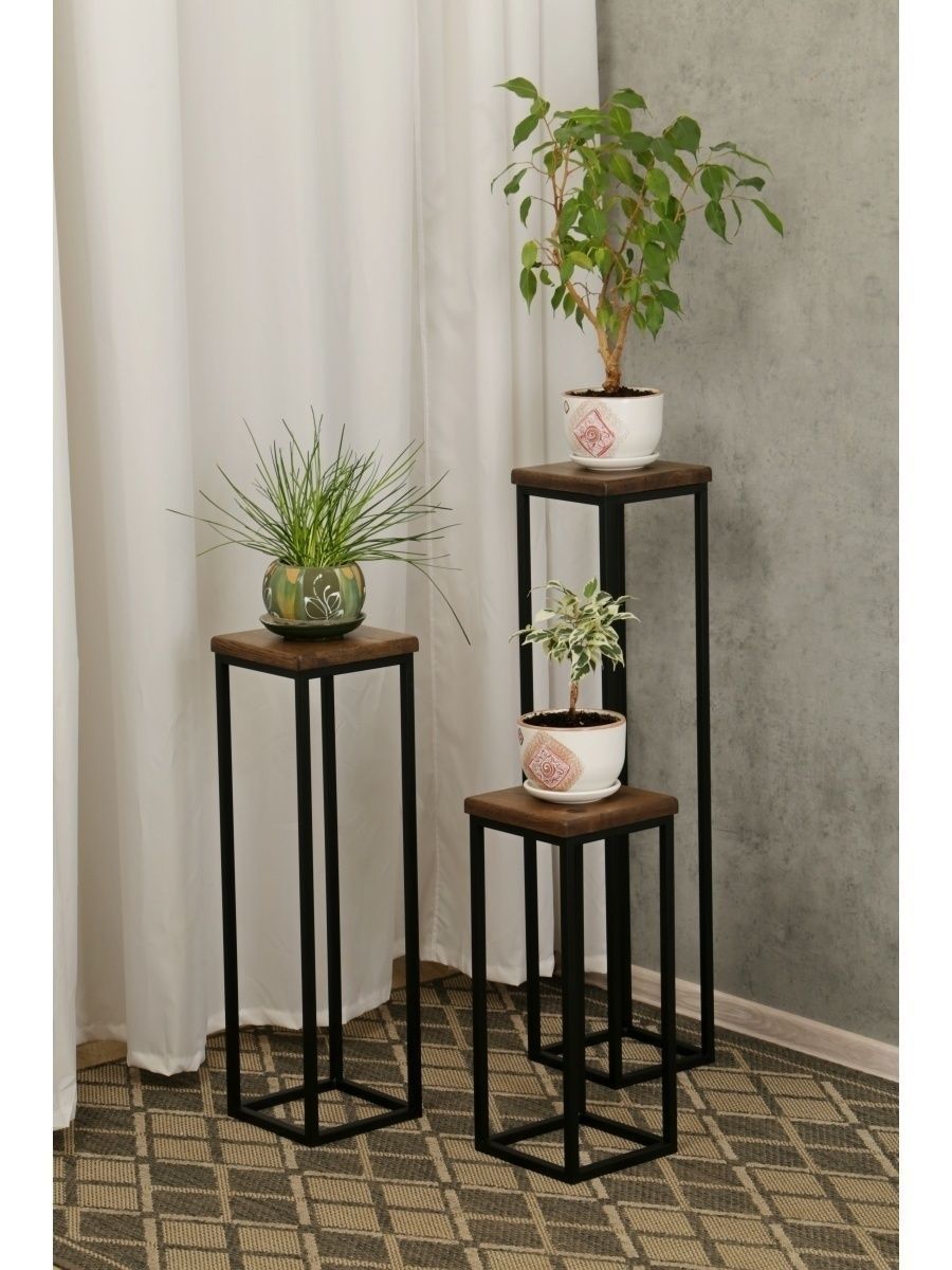Напольная подставка для цветов и комнатных растений, которая гарантировано украсит ваш дом изысканным сочетанием массива дуба, покрытого специальными маслами и воском, толщиной 20 мм и прохладной стали.