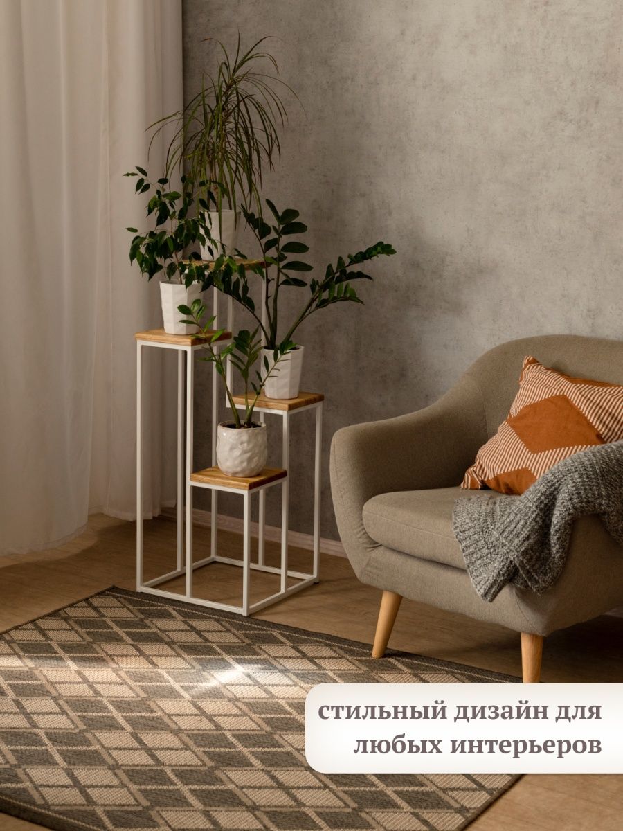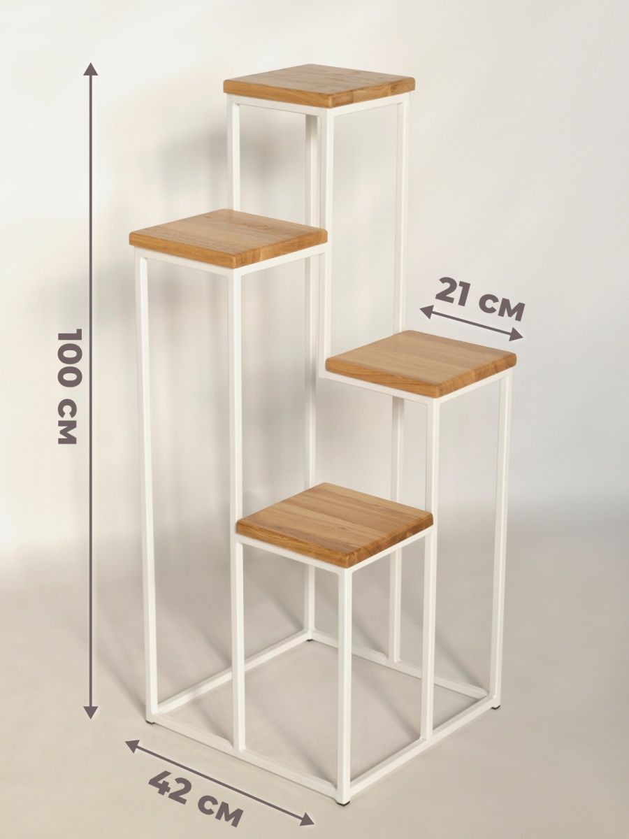 Напольная подставка для цветов и комнатных растений, которая гарантировано украсит ваш дом изысканным сочетанием массива дуба, покрытого специальными маслами и воском, толщиной 20 мм и прохладной стали.