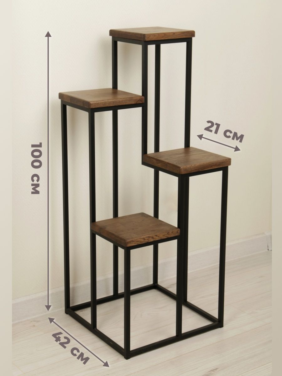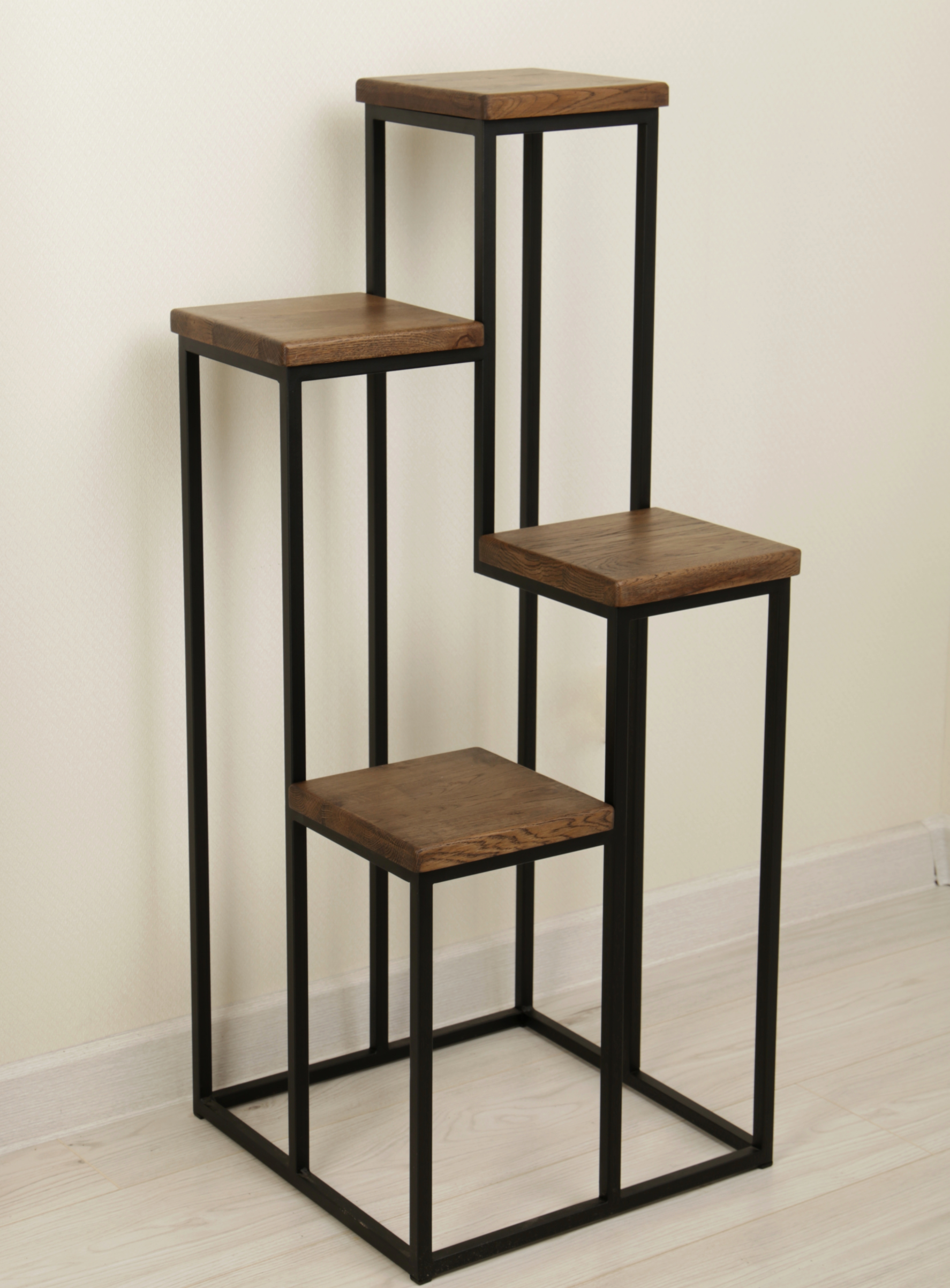 Напольная подставка для цветов и комнатных растений, которая гарантировано украсит ваш дом изысканным сочетанием массива дуба, покрытого специальными маслами и воском, толщиной 20 мм и прохладной стали.