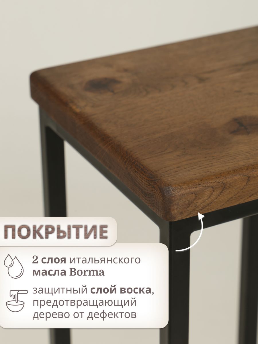 Прямоугольный барный стол, консоль. Выполнен из массива дуба и металла.