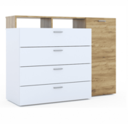 Комод выполнен из комбинации двух материалов ЛДСП и МДФ.