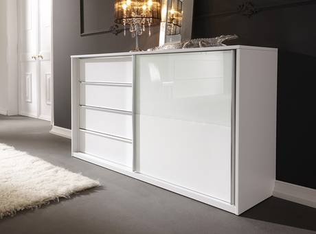 Белый комод с раздвижной дверцей