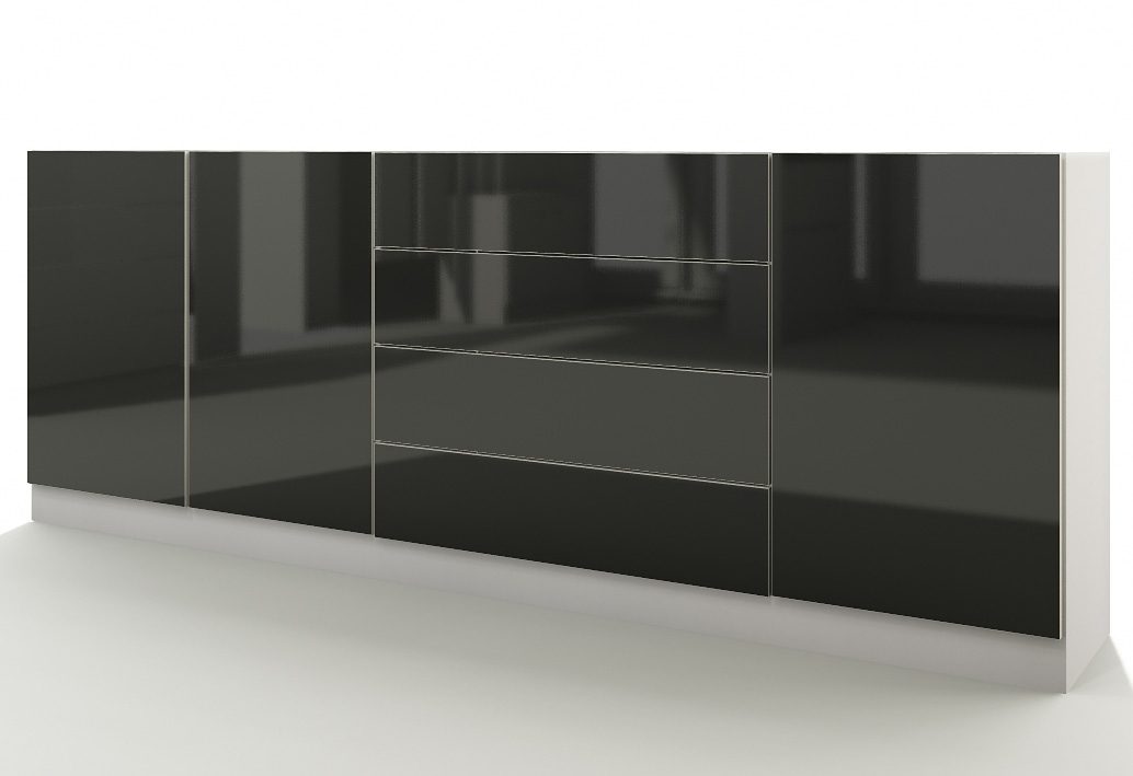 Комод занимает угол в комнате. Открытые полки по сторонам.