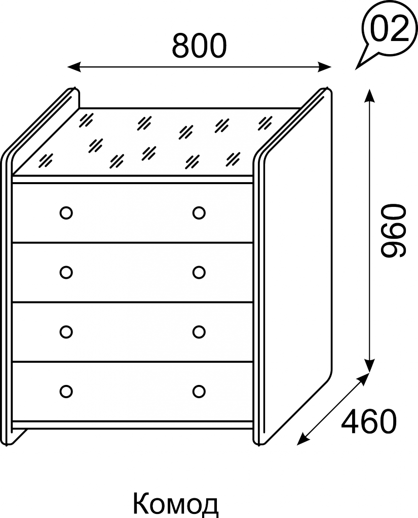 Дополнительную изюминку вносят слегка заметные круглые ручки из металла, которые гармонично сочетаются с текстурой и цветом комода. Внешнему виду не уступает и функциональность комода — четыре вместительных ящика позволят грамотно организовать хранение и зонировать расположение вещей.