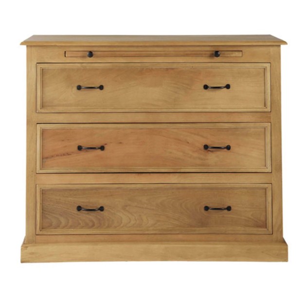 Комод-консоль для гостиной с тремя ящиками и дизайнерским исполнением под дерево.