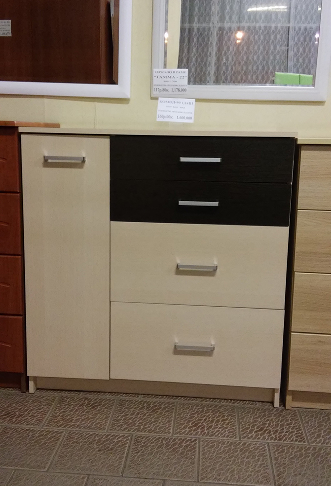Элегантный комод «1Д4Ш» Кортекс обладает неординарными контрасными фасадами, с современной фурнитурой в виде ручек-скоб. Для удобства в состав комода входят несколько глубоких выдвижных ящиков и большой шкафчик.