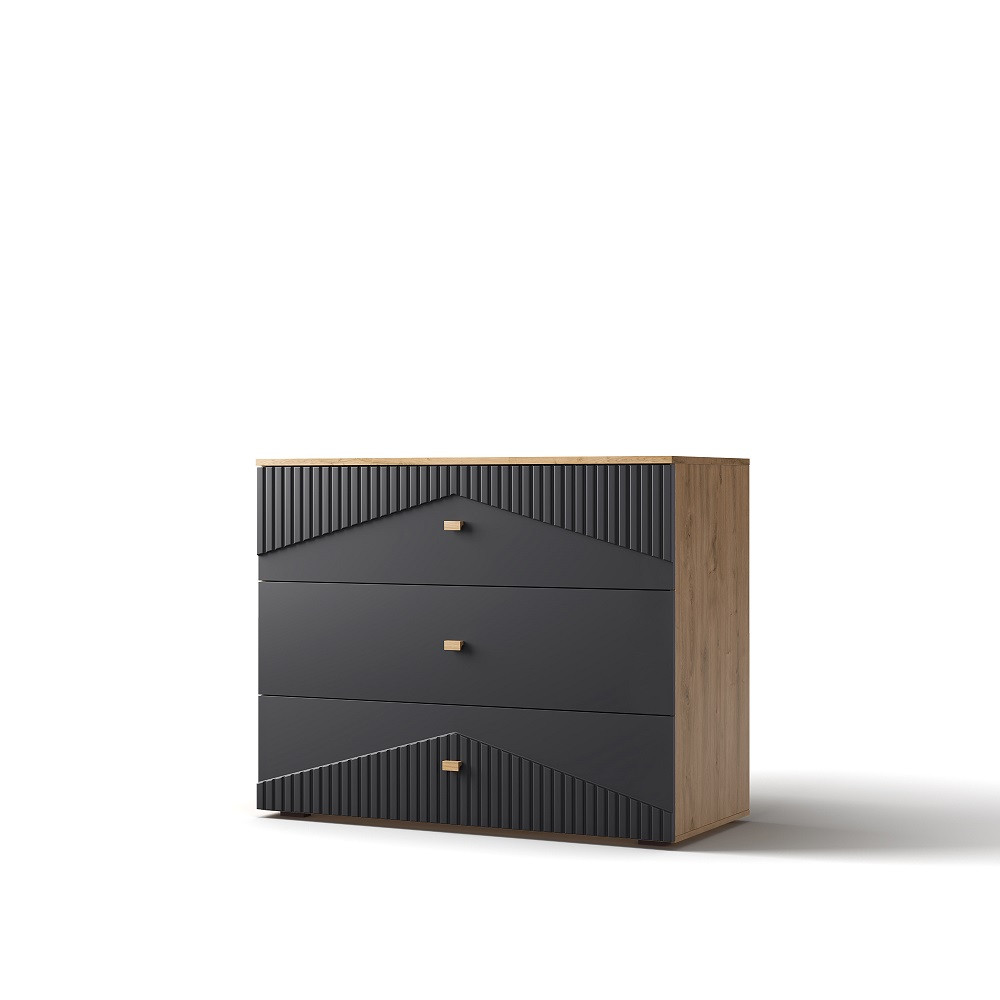 Комод «3Я Оливия» Дуб Наварра / Шагрень черная КМК