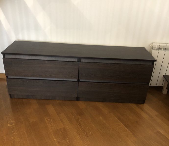 Габариты комода: 110х77х45 см. Матовые фасады без ручек.