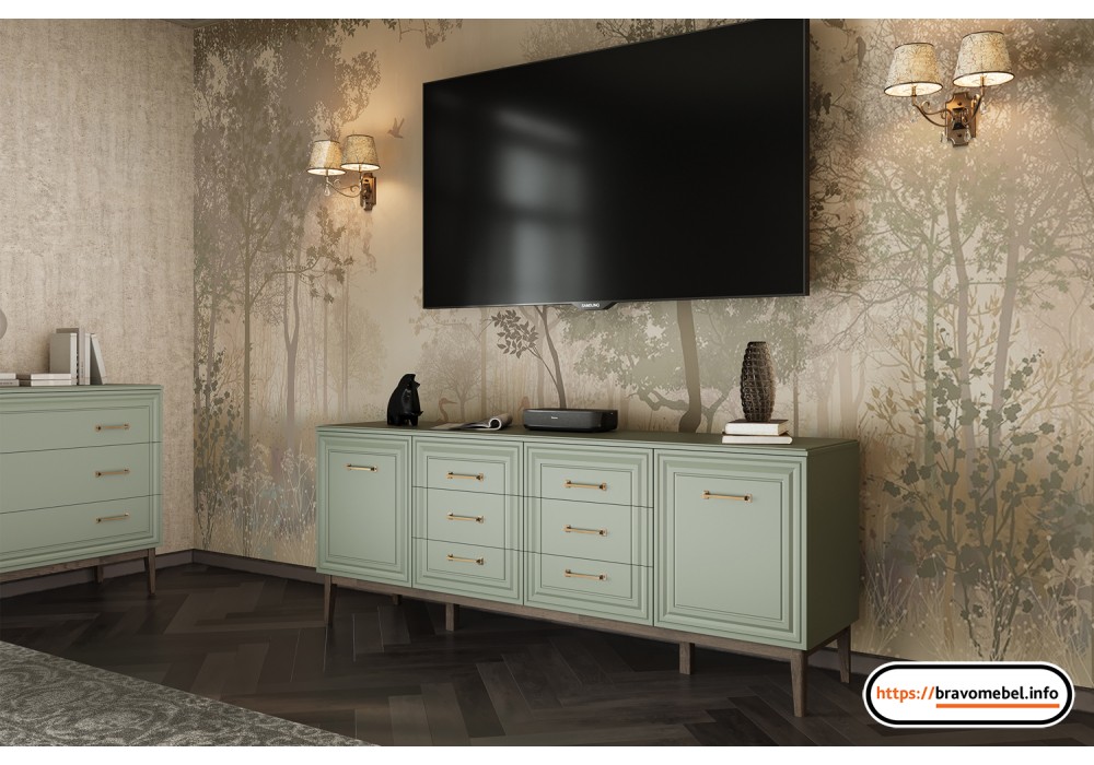 Комод 6 ящиков 2 двери «Гориция» (Зелёный самшит) фабрика Браво Мебель