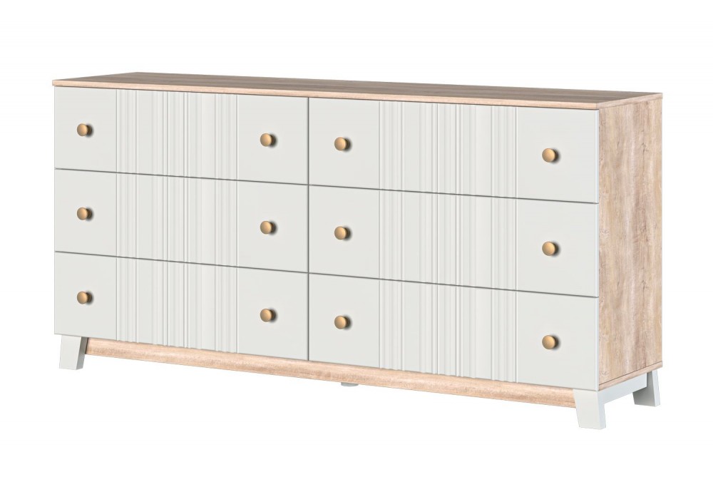 Комод 6 ящиков «Ланзетти» (Дуб Торонто/Жемчуг) фабрика Браво Мебель