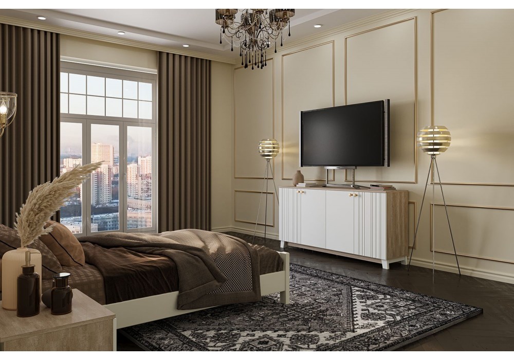 Комод «Никеа» 4 ящика 2 двери (Белый снег/Лак Белый) фабрика Браво Мебель