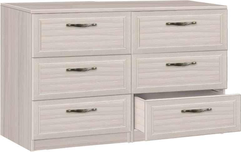 Простой комод с выдвижными ящиками. Рейлинговые ручки.