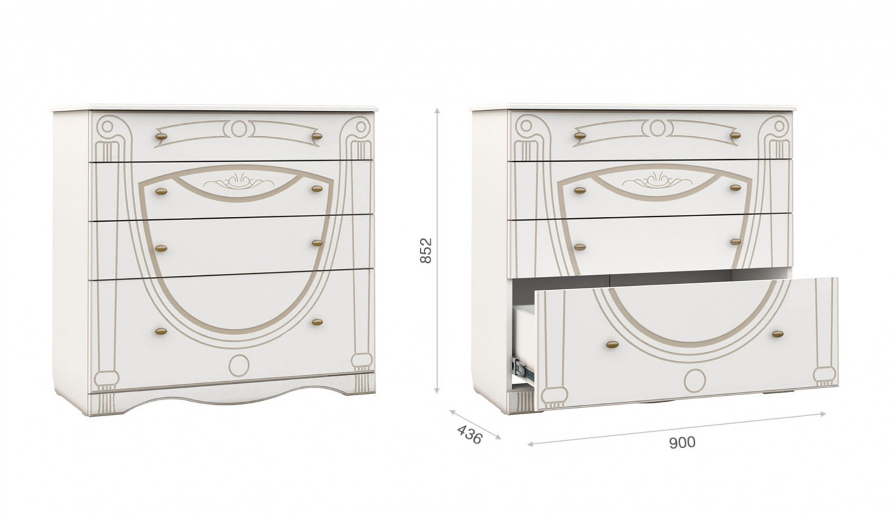 Комод «Александрина» Белый патина золото