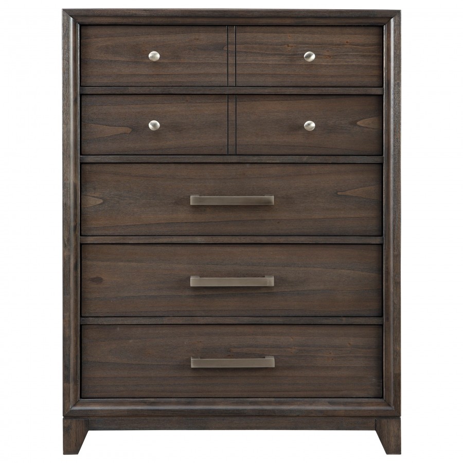 Белый матовый комод декорирован вставками в цвете светлого дуба.