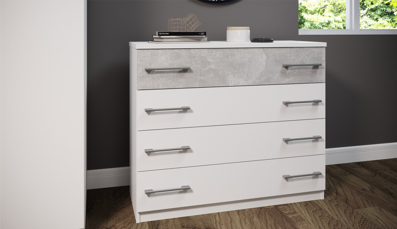 Комод «Аврора 4 ящ» белый/ателье светлый Imperial