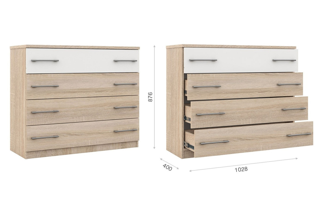 Комод «Аврора 4 ящ» дуб сонома/белый Imperial