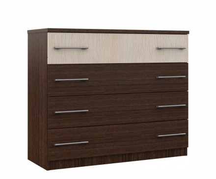 Вместительный комод в красном цветовом исполнении кромок, стильной фурнитурой и 5 выдвижными ящиками.