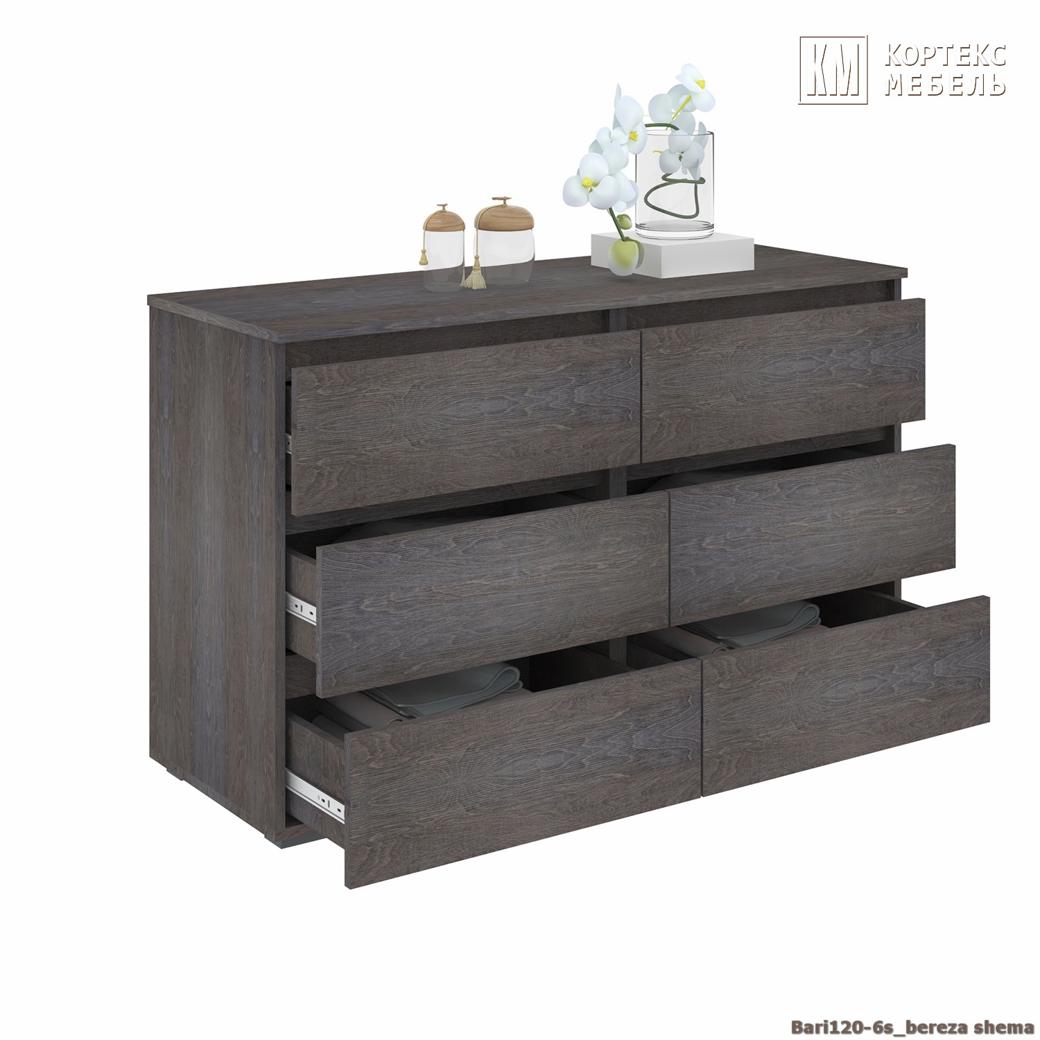 Размер: 160x77x48 см. Шесть плавно выдвижных ящика.