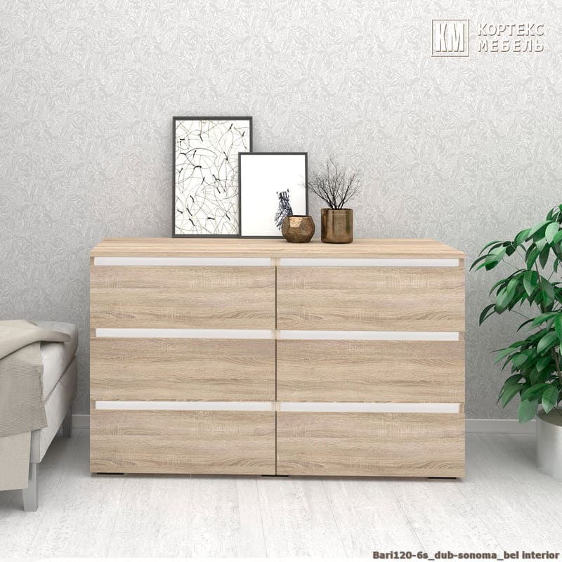 Комод «Бари 120-6ш» (дуб сонома - белый текстурный)