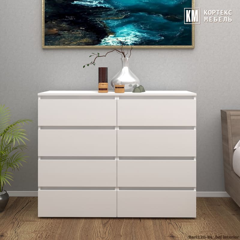 Комод «Бари 120-8ш» (белый текстурный)