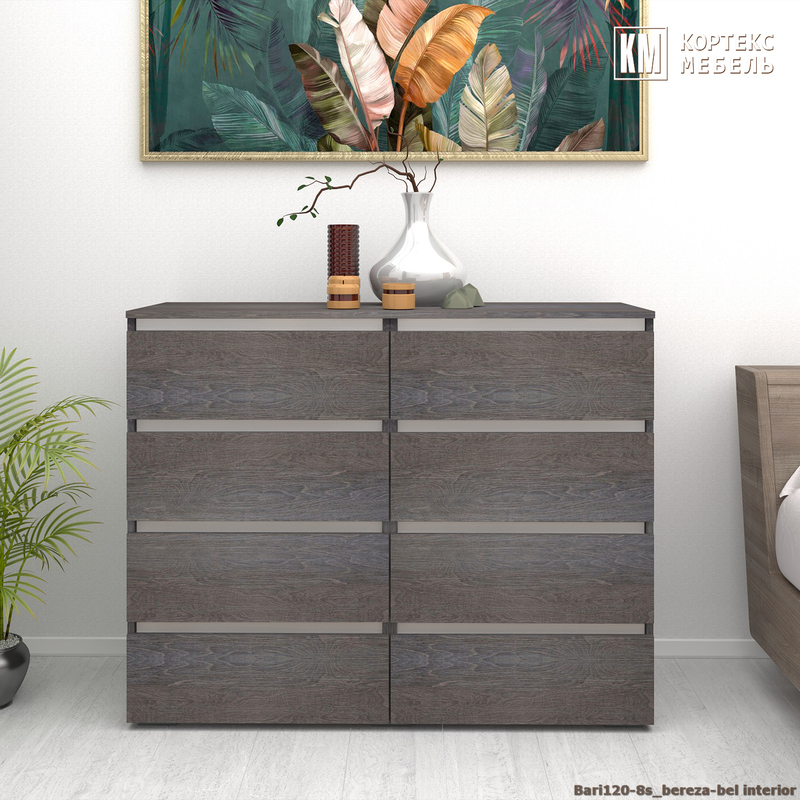 Комод «Бари 120-8ш» (берёза - белый текстурный)